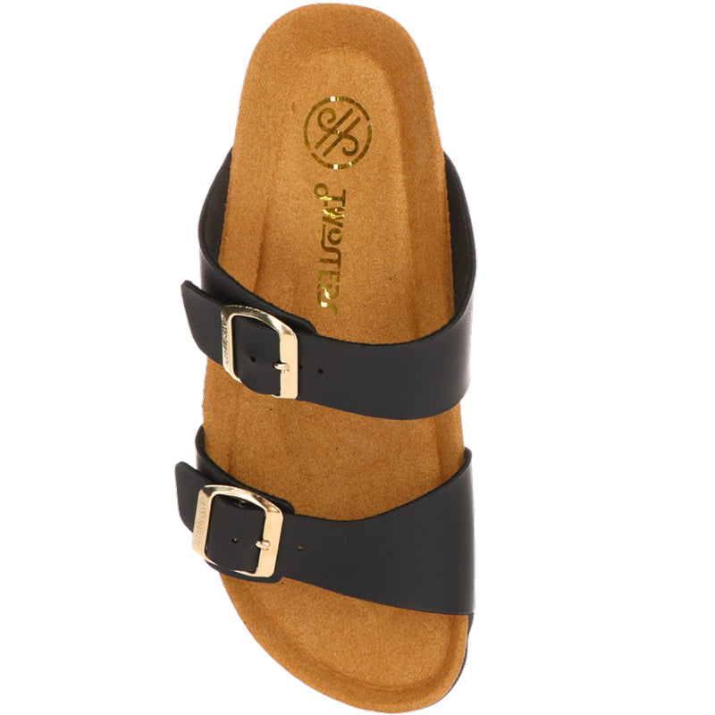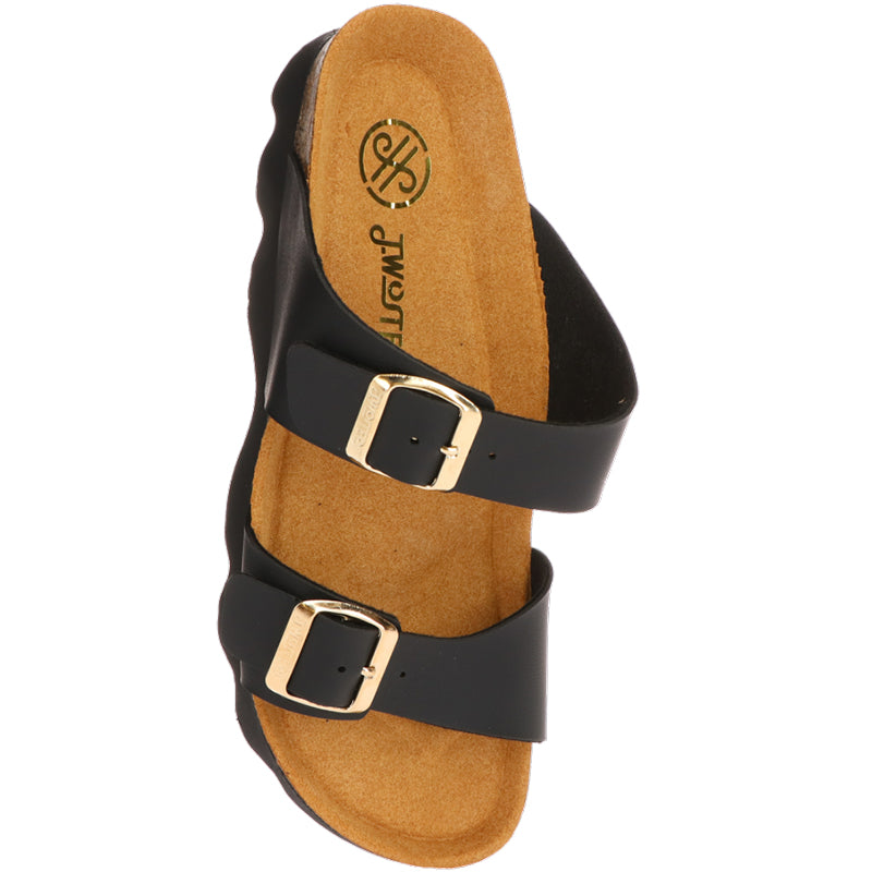 Mit unserem Strap aus mattem Kunstleder kannst du nichts falsch machen. Die Sandalen im klassischen Design sind eher dezent gehalten und dadurch vielfältig kombinierbar. Die goldenen Schnallen verleihen den Schuhen zusätzlich einen hochwertigen Touch. Durch das einzigartige Wellendesign an der Sohle sind die Twosteps die perfekte Ergänzung zu deinem Sommerlook.