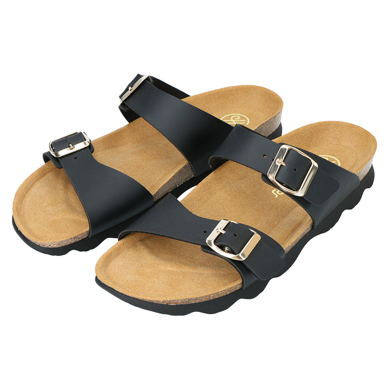 Mein zweites Paar! Die letzten habe ich schon so gerne getragen (in leo). Sie halten total lange. Zwei Sommer als Sandalen, im Winter als Hausschlappen... jetzt nehme ich sie noch für den Garten. Total gemütlich, super Passform. Und sie sind noch hübscher als auf dem Bild finde ich. Mattes schwarz, schöne goldene Schnallen, passt zu Allem. Und natürlich vegan... klare Kaufempfehlung.