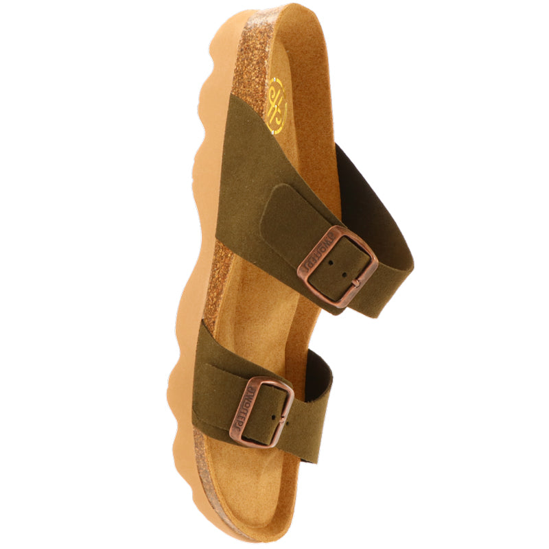 Das Fußbett aus Kork unterstützt deinen Fuß in seiner natürlichen Form und wirkt ähnlich wie eine Einlage. Im Gegensatz zu vielen anderen Sandalen ist die Sohle der Twosteps flexibel, sodass deine Füße richtig abrollen können. Das verleiht dir nicht nur einen schöneren Gang, sondern ist auch gesünder für die Füße. Der Filzbelag mit dem die Riemen unterlegt sind verhindert Reibung und sorgt dafür, dass sich der Stoff gut auf deiner Haut anfühlt.