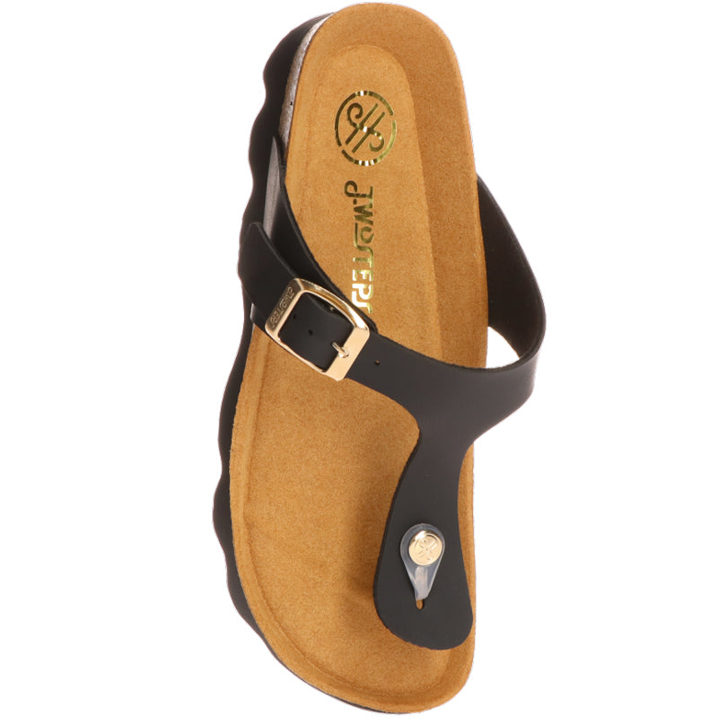 Mit den Twosteps Thong aus mattem Kunstleder kannst du nichts falsch machen. Die Sandalen im klassischen Design sind eher dezent gehalten und dadurch vielfältig kombinierbar. Die goldenen Schnallen und die dazu passenden Zehentrenner verleihen den Schuhen zusätzlich einen hochwertigen Touch. Durch das einzigartige Wellendesign an der Sohle sind die Twosteps die perfekte Ergänzung zu deinem Sommerlook.