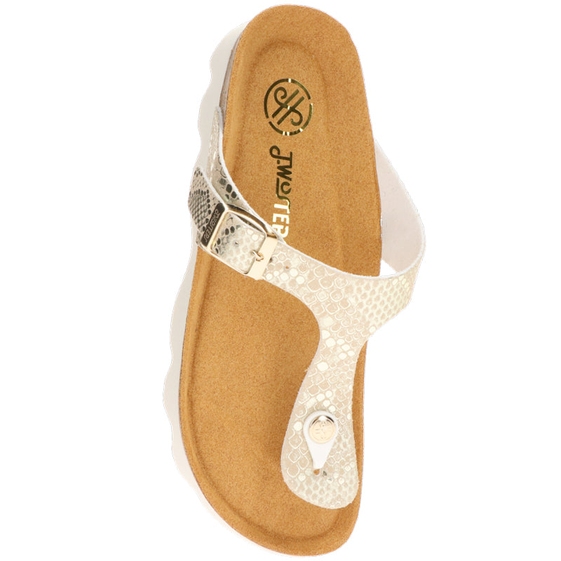 Mit den Twosteps Strap in angesagter Schlangen-Optik zeigst du dein Trendbewusstsein und verpasst jedem schlichten Outfit ein Upgrade. Die goldenen Schnallen und die dazu passenden Zehentrenner verleihen den Schuhen zusätzlich einen hochwertigen Touch. Durch das einzigartige Wellendesign an der Sohle sind die Twosteps die perfekte Ergänzung zu deinem Sommerlook.